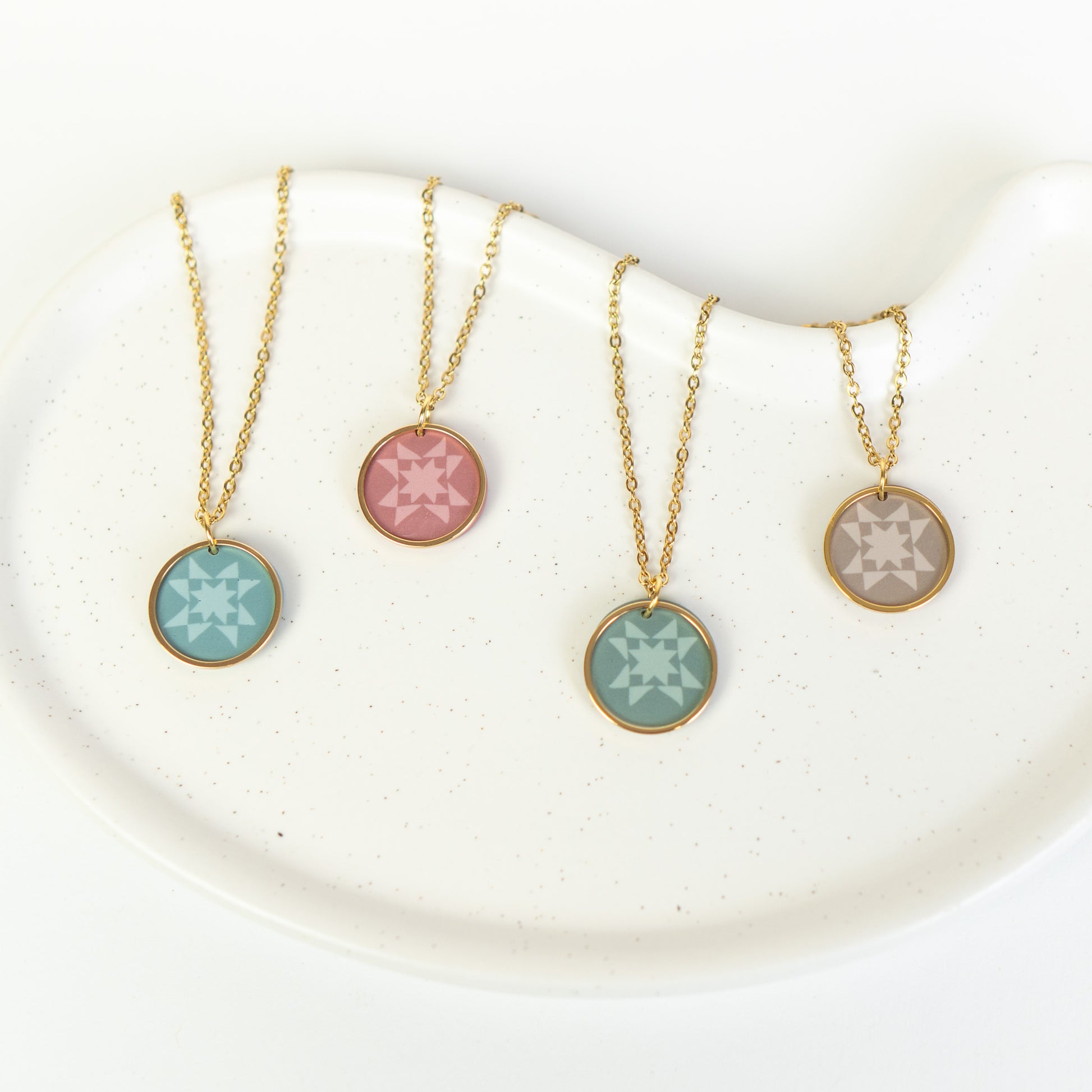 Wähle aus einer der 4 harmonischen Farben aus, kombiniert mit einem verspielten goldfarbenen Kreiselement.